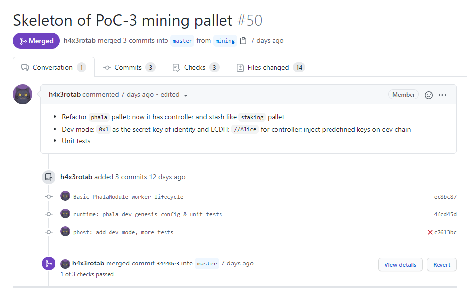 PoC3 miner registration logic and key management minor refactor https://github.com/Phala-Network/phala-blockchain/pull/50